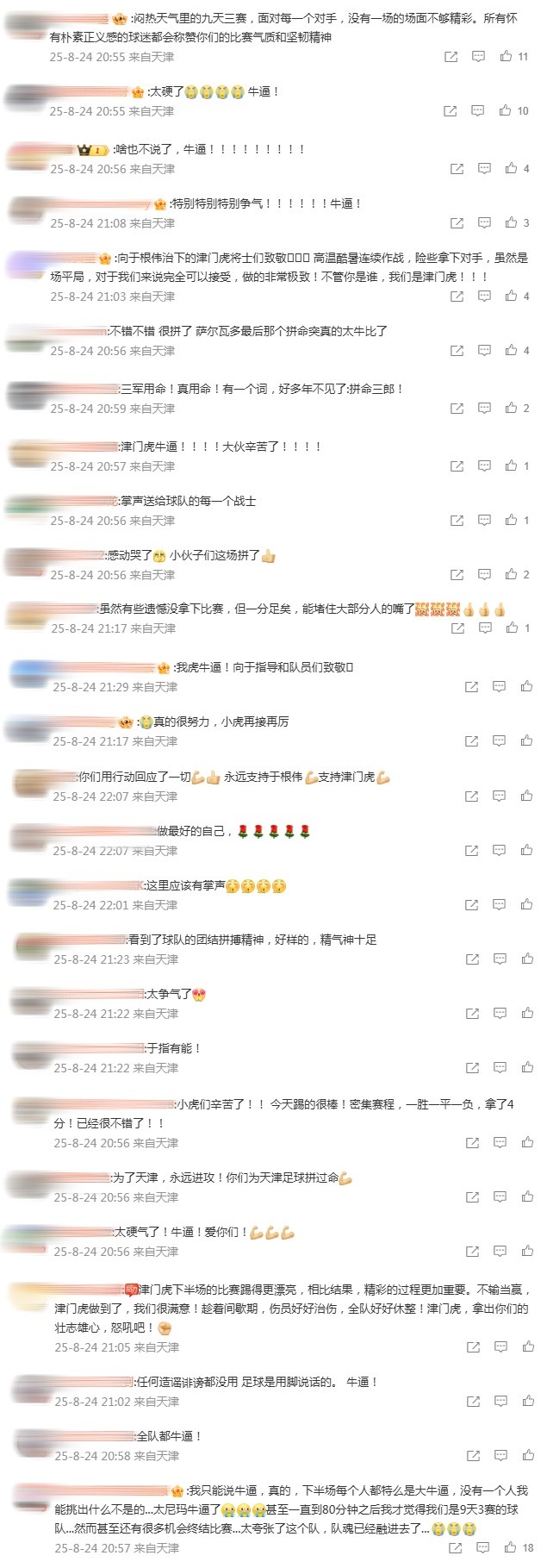 争气!球迷赞津门虎:太牛X了!你们用行动回应了一切