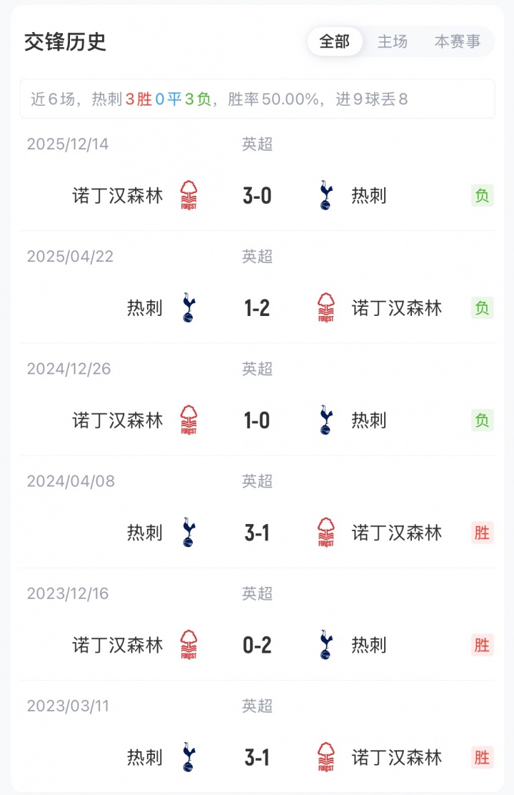 赛前热刺积30分排第16,森林积29分排第17,本场比赛是名副其实的保级大战!近三次交手,热刺全部败在森林脚下,上赛季还遭到对手双杀。